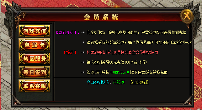 答:点击游戏右侧【签到】按钮,每天可以免费领取50元真实充值,一天只能领取一次哦!